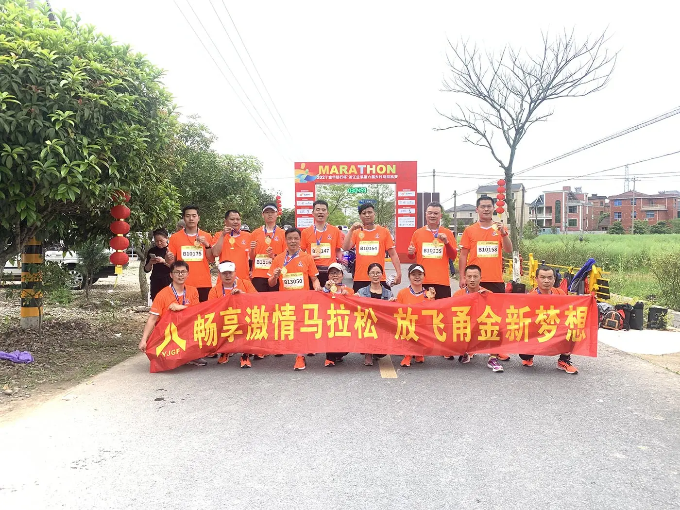 4月11日上午8时2021“金华银行杯”浙江兰溪第六届乡村马拉松赛激情开赛,同日上午7时30分,2021无锡马拉松暨大运河马拉松系列赛(无锡站)精彩开赛。公司员工积极报名,共有16名选手参加了兰溪马拉松赛事,公司董事长虞纪群更是带领两员大将前往无锡站参加无锡马拉松赛事。时隔两年“甬金战队”再次参赛,战队主题为“畅享激情马拉松,放飞甬金新梦想”,口号是“甬金、甬金、精益求精,甬金、甬金、行业领军”。